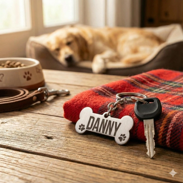 Personalised name metal pet dog keychain