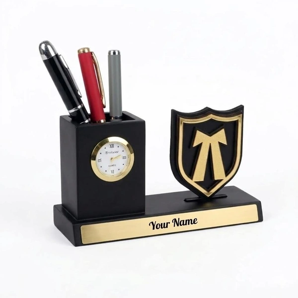 Elevate any legal workspace with this sophisticated, multi-functional desk organizer. Crafted for those who uphold justice, this piece combines utility with a refined aesthetic, featuring the iconic advocate’s neckband emblem set within a striking gold-and-black shield.