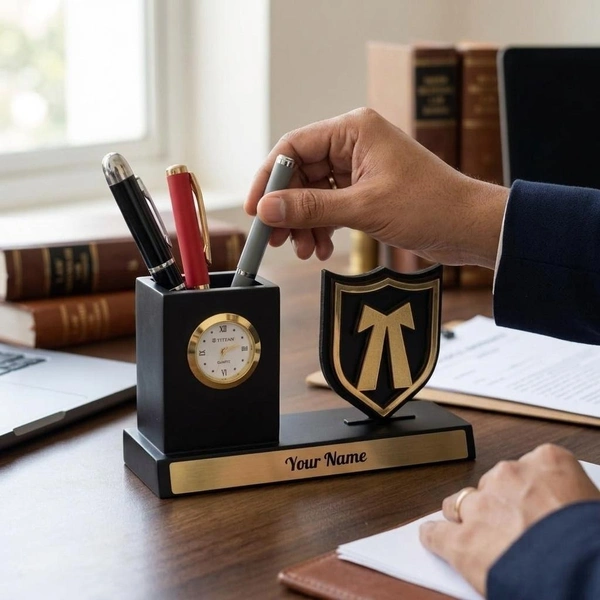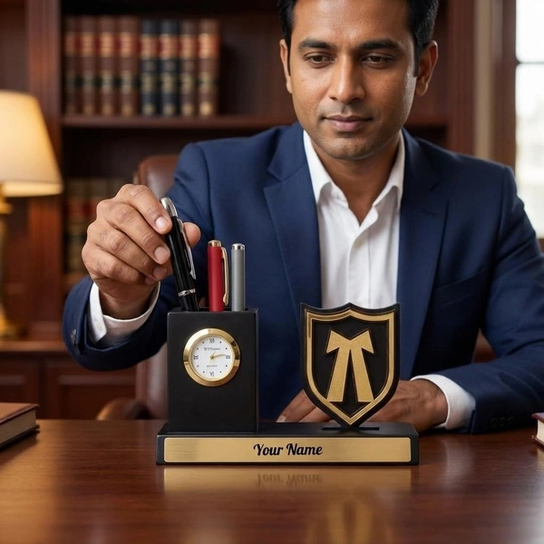 Premium Personalized Advocate Desk Organizer with Analog Clock